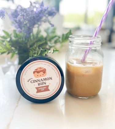Add a teaspoon of Kim’s Cinnamon Bun Dip to your hot or cold brew for decadent treat!