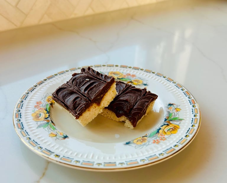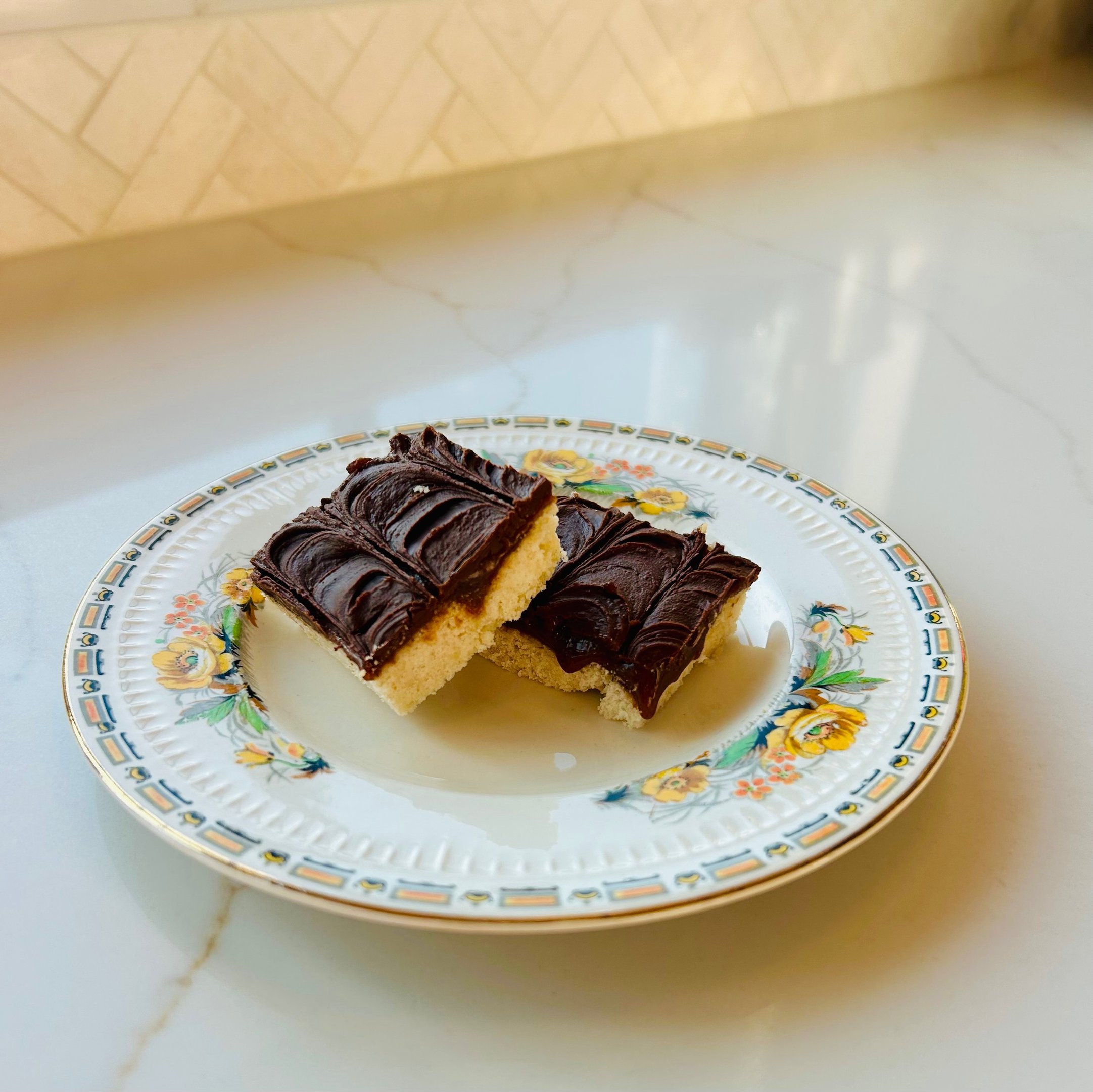 Gently melt chocolate chips in the microwave with 1tbsp of butter. Spread melted chocolate over to cover completely. Chill in the refrigerator until chocolate is set, about 30 minutes. Cut into bars.
